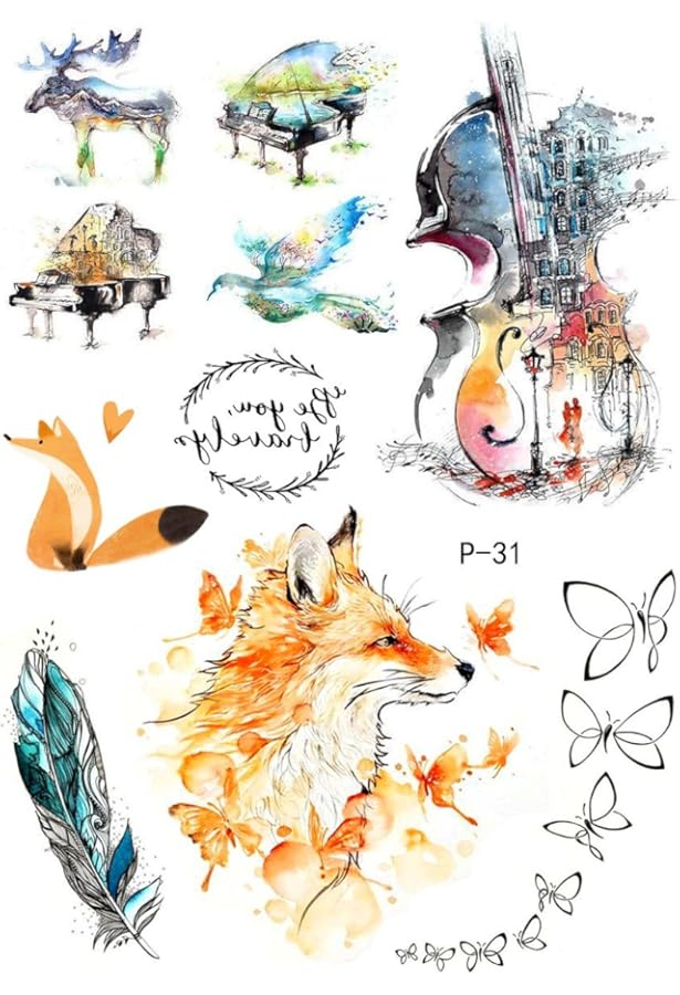 Fox Tattoo Colourful Fake Tattoo Disposable Tattoo For Gluing Km159 Amazon De Beauty