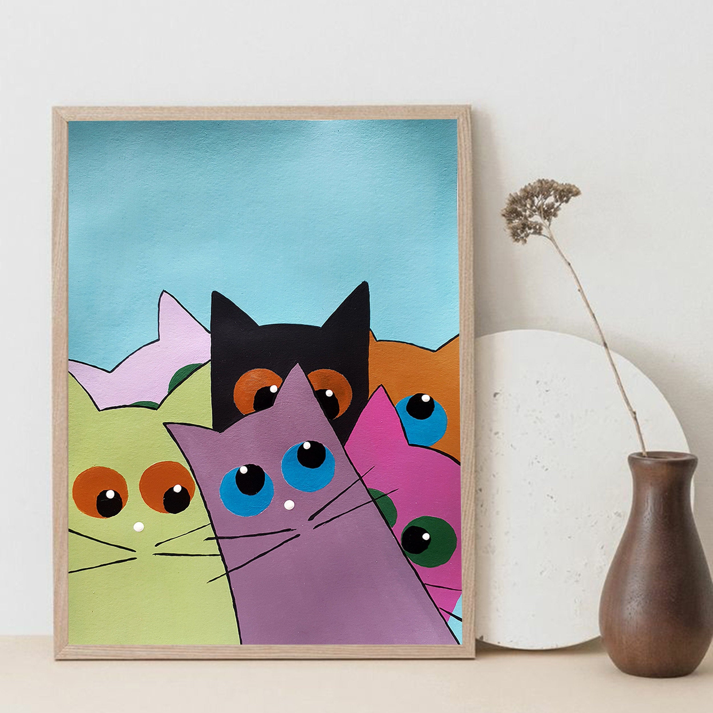 Colorful Cats Painting Rainbow Color Kids Room Desk Or Wall Etsy Uk